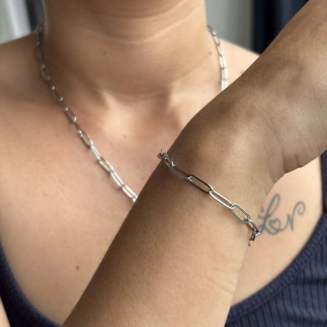 Collier et bracelet argentés assortis, élégants et intemporels. Un duo chic à prix doux.